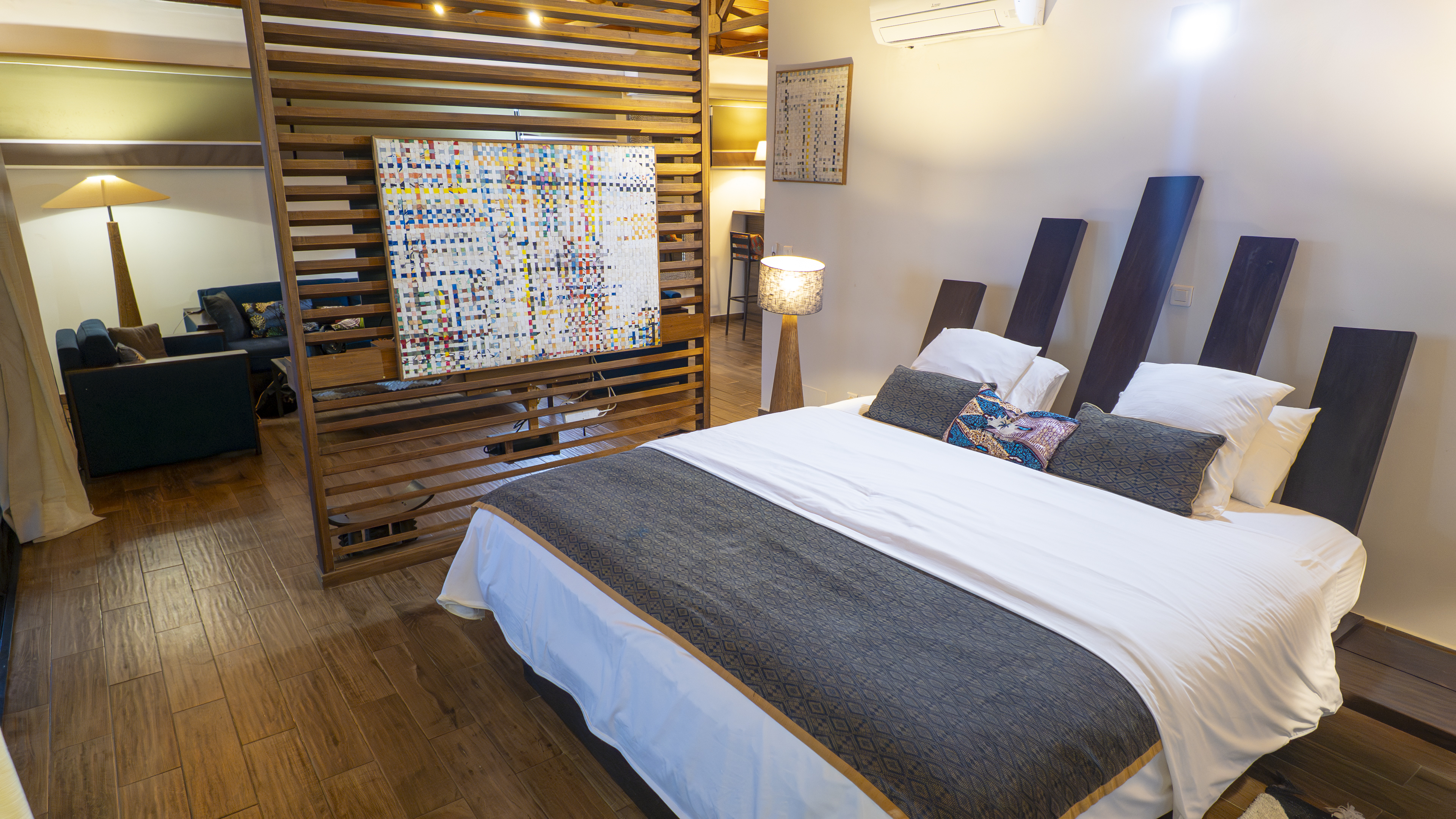 Réalisées par l’architecte Ivoirien Abdoulaye Dieng, les suites d’affaire ont été conçus pour offrir une vue imprégnante sur la cocoteraie et la lagune. Elles sont entièrement habillées par les tissus Aissa Dione, vous pourrez profiter du salon dans toute votre intimité.